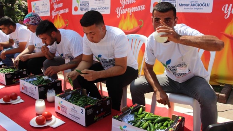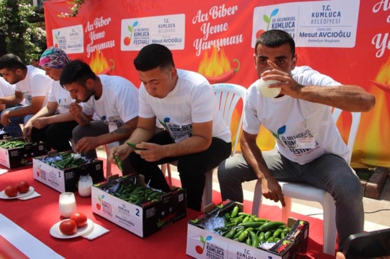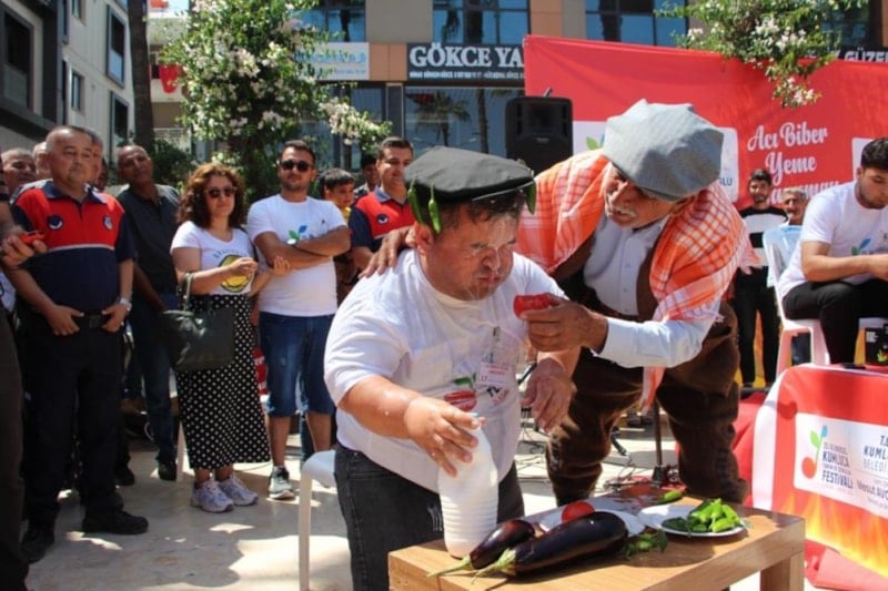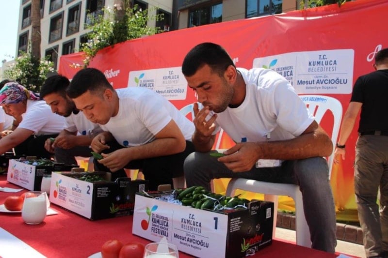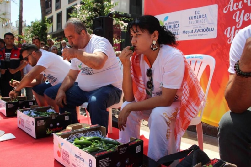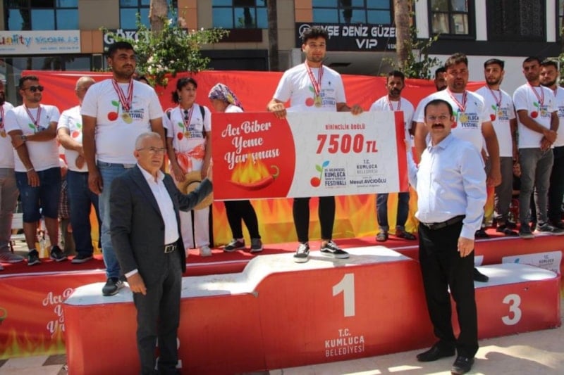 Kumluca Belediyesi tarafından Tarım ve Seracılık çerçevesinde düzenlenen acı biber yeme yarışmasında 323 gram acı biberi yiyen Ahmet Gürhan birinci oldu.