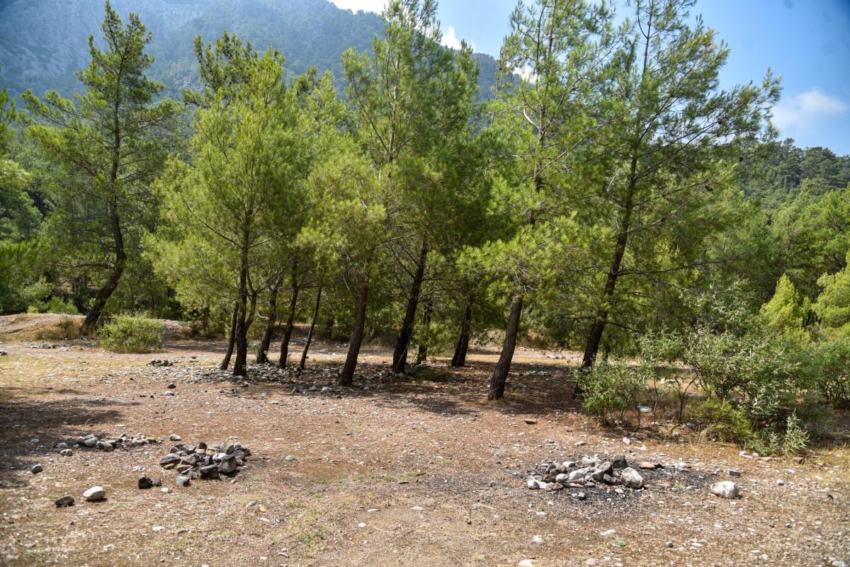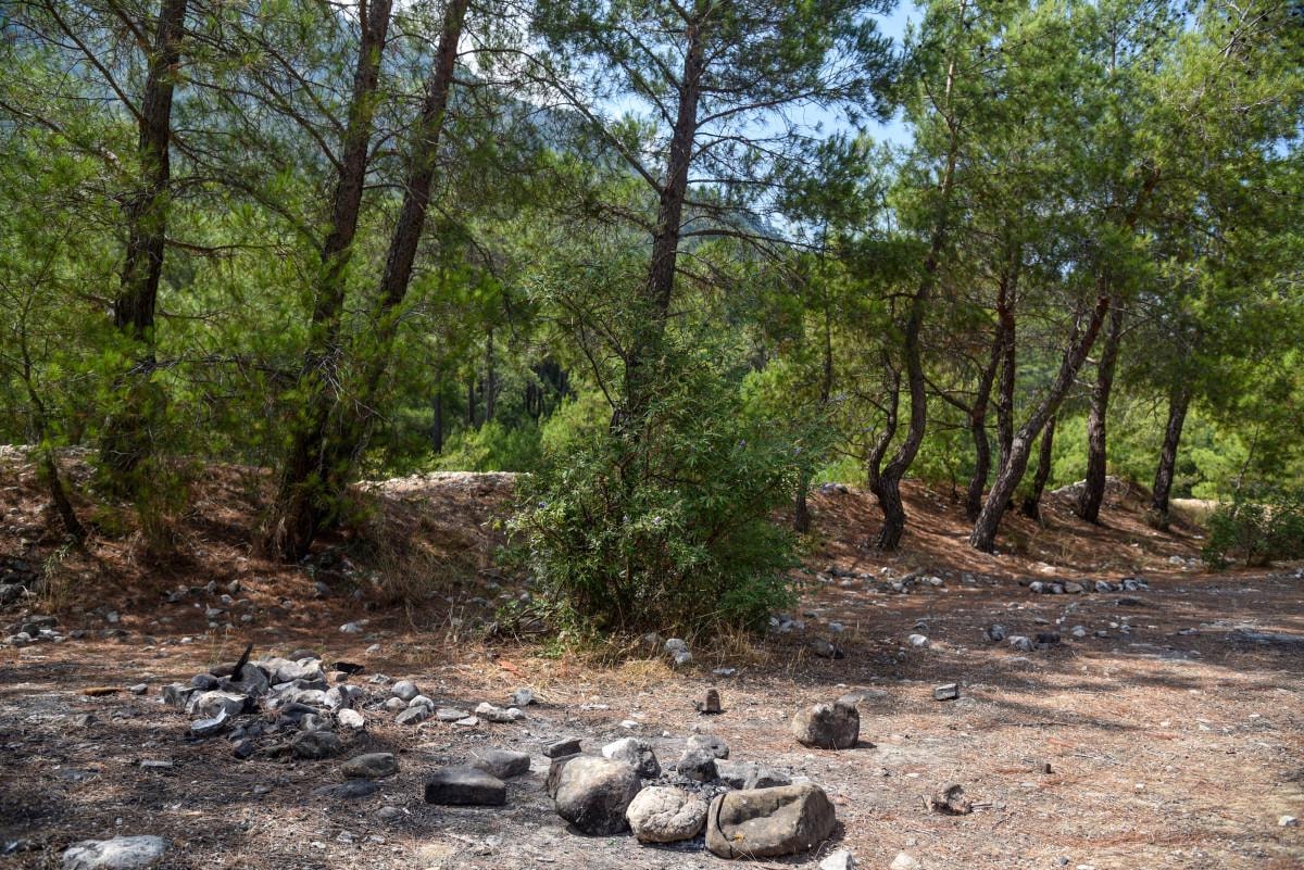 Ağaç diplerinin ateş alanı olarak kullanıldığı bölgede, duyarsız kişilerin plastik atık, cam şişe, poşet gibi çöpleri çevreye bırakması dikkat çekti. Yaz aylarında güneş ışınlarını mercek gibi yansıtıp yangına sebebiyet verebilen cam şişe ve cam kırıklarının bölgedeki çam pürü üzerine yayıldığı gözlendi.