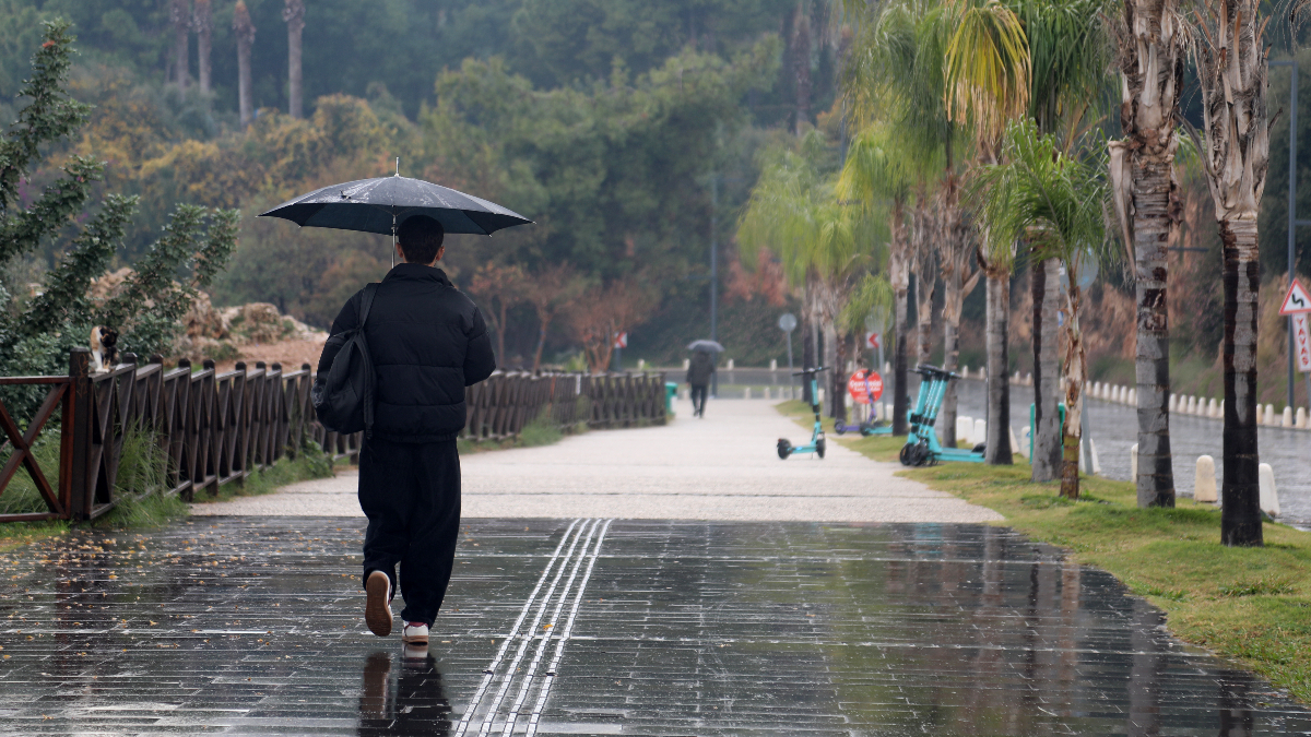 Konyaaltı Sahili yağıştan dolayı boş kalırken, kimileri yağmur altında yürüyüş yaptı.