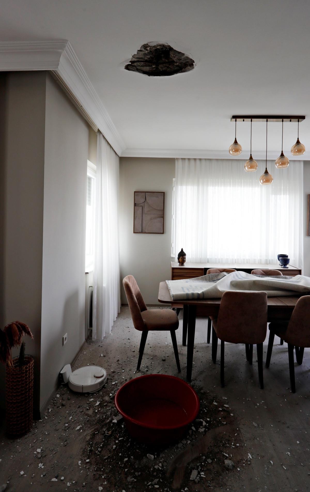İlk olarak çatıya hasar veren yıldırımın çarpma şiddetiyle dairenin salonunda koca bir delik açıldı.