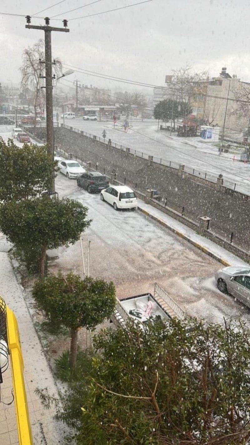 Bazı bölgelerde etkili olan dolu yağışı nedeniyle sokaklar beyaza büründü. Aniden bastıran yağmur ve dolunun şokunu yaşayan Antalyalılar, büyük bir gürültüyle düşen yıldırımla ikinci şoku yaşadı.