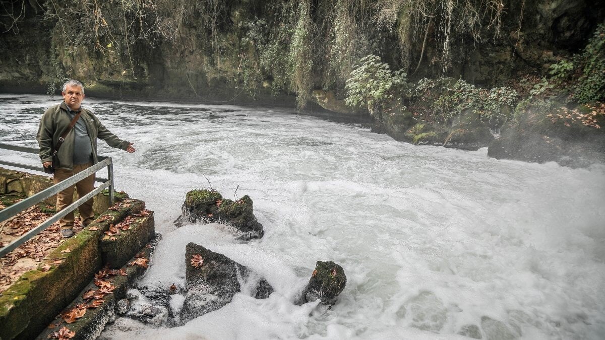 Düden Şelalesi'ne yıllardır komşu olan Kazım Bilgili de kokudan ve köpüren, sudan şikayetçi oldu.