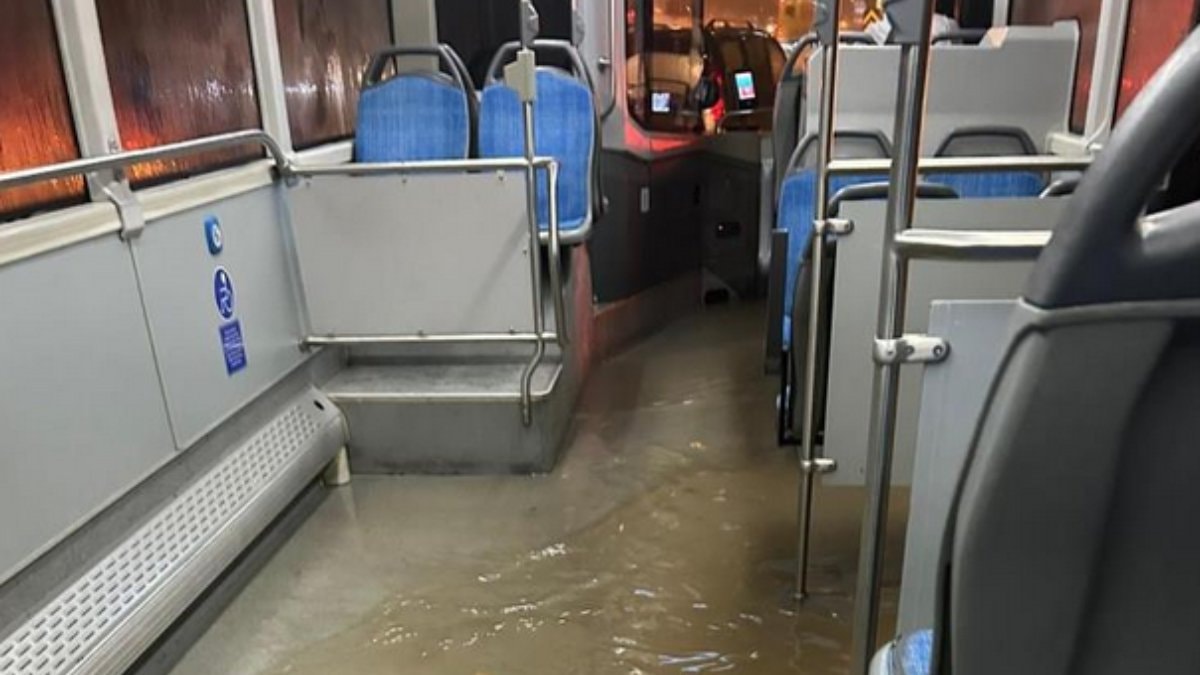 Halk otobüsünü su bastı