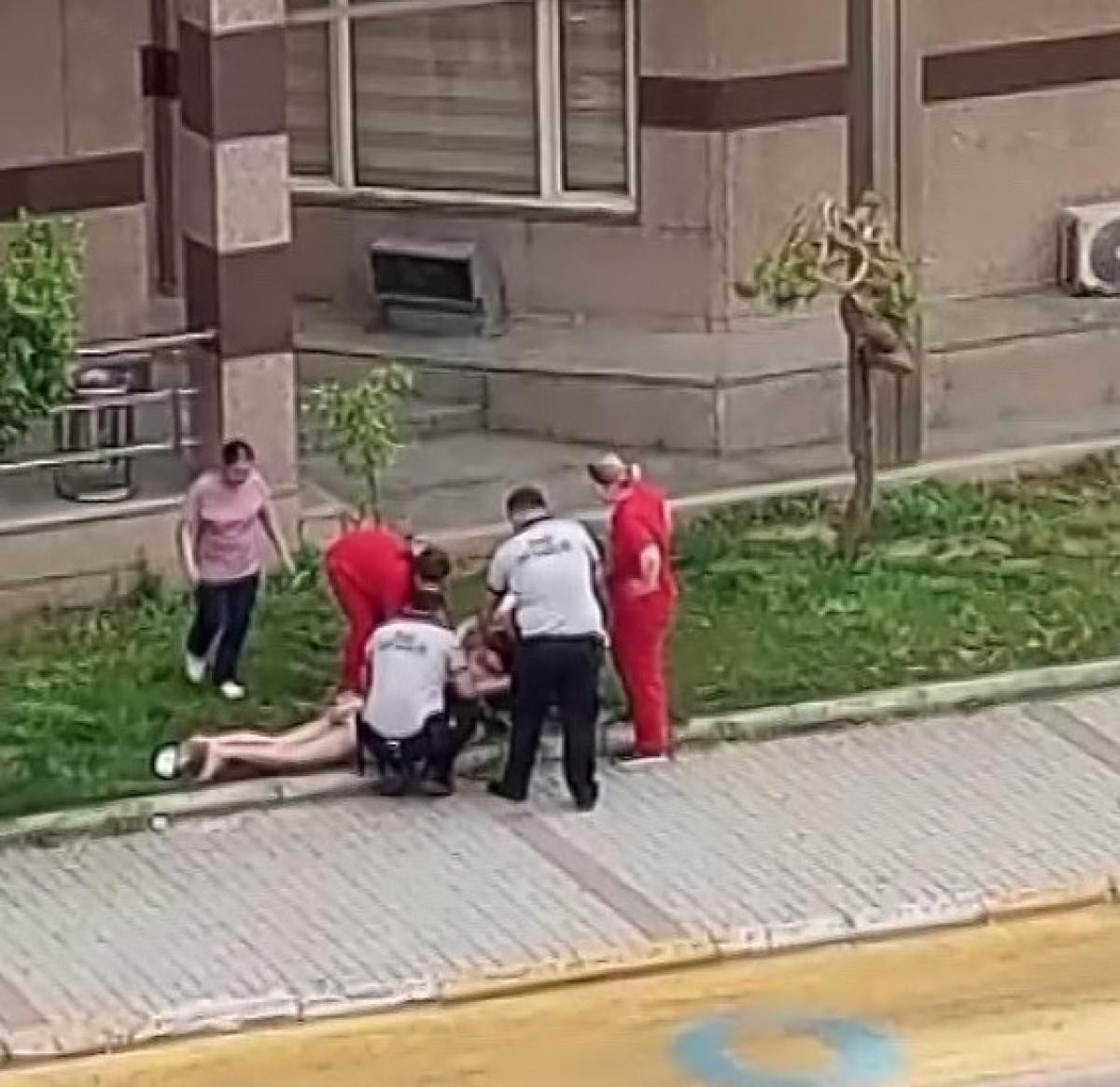 Olayın ardından çekilen bir cep telefonu kamerası görüntüsünde ise yere düşen kişiye hastane görevlilerinin yardım ettiği anlar yer aldı.