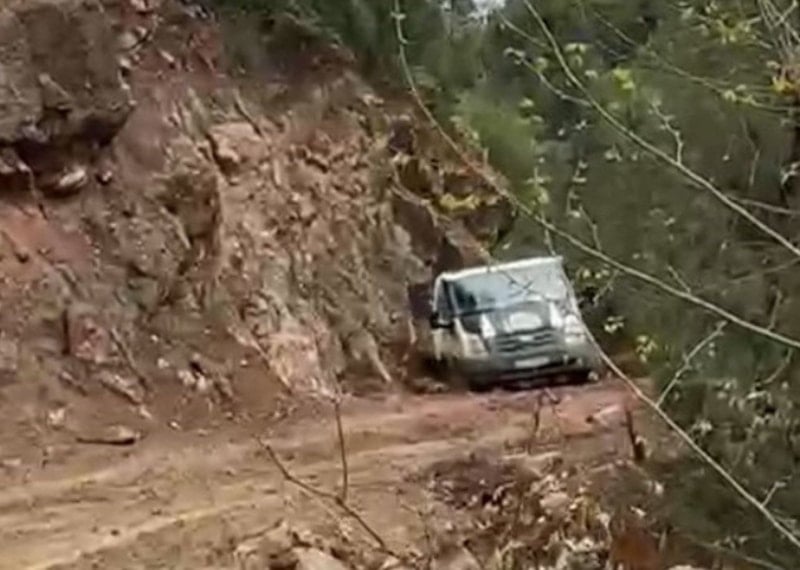 Serik ilçesinde meydana gelen heyelan sonrası yola akan toprak, yağışın etkisiyle çamura dönüştü. Araç sürücüleri ilerlemekte güçlük çekerken bir kamyonet kayarak şarampole girdi. O anlar cep telefonu kamerasına yansıdı.