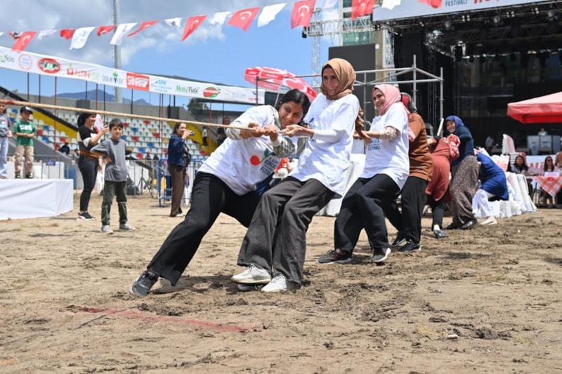 Etkinliklerin en dikkat çeken yarışmalarından biri halat çekme yarışı oldu.
