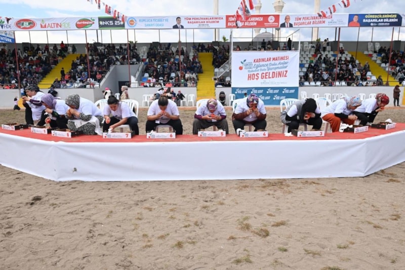Antalya'nın Kumluca ilçesindeki 26. Tarım ve Seracılık Festivali kapsamında gerçekleştirilen yarışmalar renkli görüntülere sahne oldu. Etkinlikte domates yeme yarışmasında bir yarışmacı 1,5 kilo üzerinde domates yiyerek birinciliği elde etti.