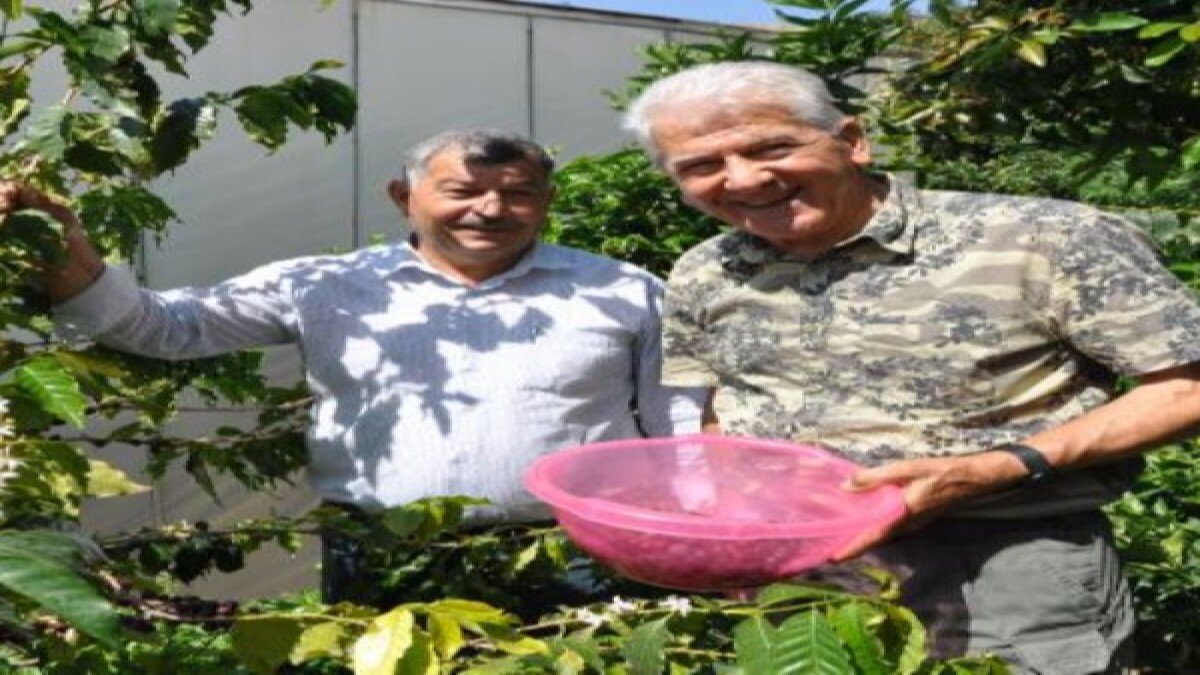 Bahçesine deneme amaçlı kahve fidesi de diken Dağtekin, Türkiye'de ilk kez kahve ağaçlarından meyve elde etmeyi başardı.