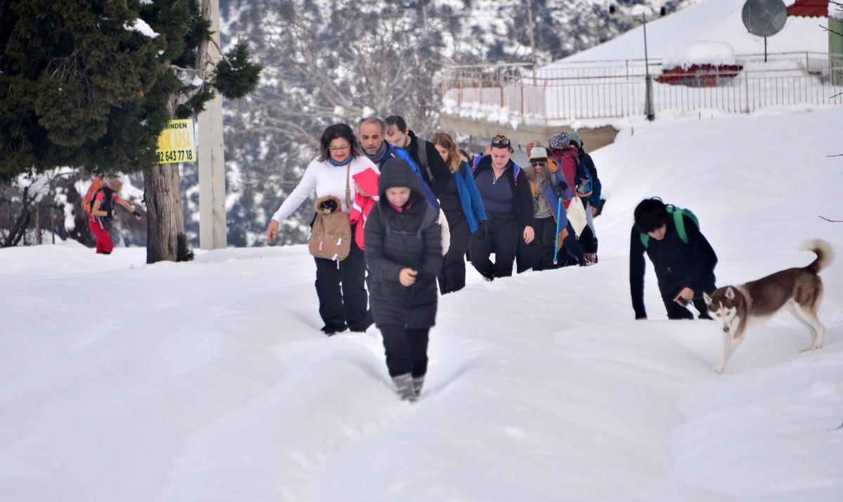 12 yıldır Beydağları'nın karlı zirvelerinde doğa yürüyüşü etkinlikleri kapsamında 'kar yürüyüşü' yapan sportif doğa gruplarından Patika üyeleri, Moryer ve Sarıbelen bölgesinde 7 kilometre yürüdü.