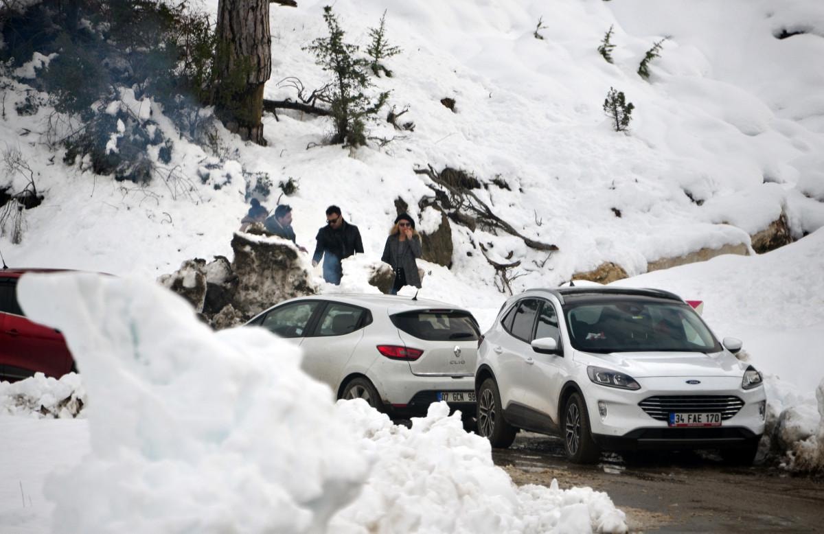 Kentte yaşayanlar, hafta sonu ile birlikte Saklıkent, Feslikan, Tunç Dağı etekleri, Moryer gibi kar kalınlığı 1 metreyi aşan bölgelere akın etti.