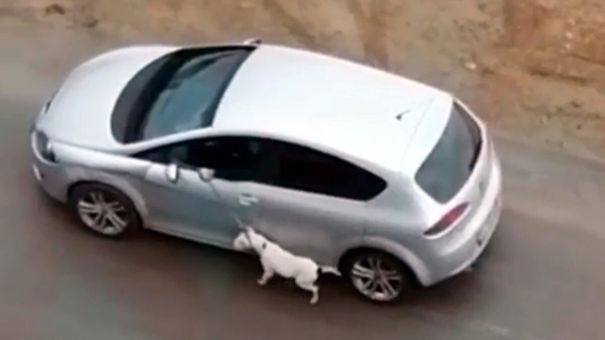 Ardından da aracını sürerek, köpeği gezdirmeye başladı.