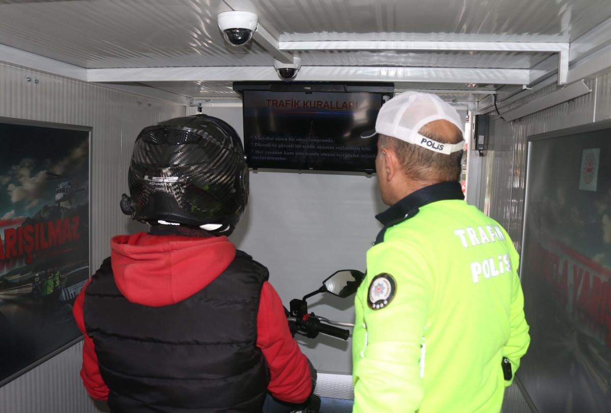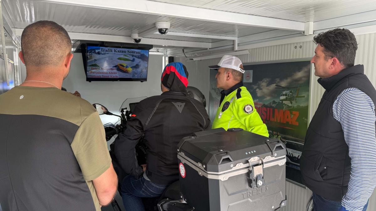 Bu eğitim karavanında motosiklet kullanıcılarına, yapmamaları gereken hatalar ve kask takmanın önemi gibi konular videolarla anlatılıyor. Motosiklet sürücüleri, karavanın içine girerek kural ihlalleri ile sadece kendi canlarını değil, diğer sürücülerin de hayatlarını tehlikeye atabileceklerini öğreniyorlar. Eğitim sırasında bir trafik polisi, sürücülere motosiklet bakımı, kaskın önemi ve dikkatli sürüş konularında bilgi veriyor.