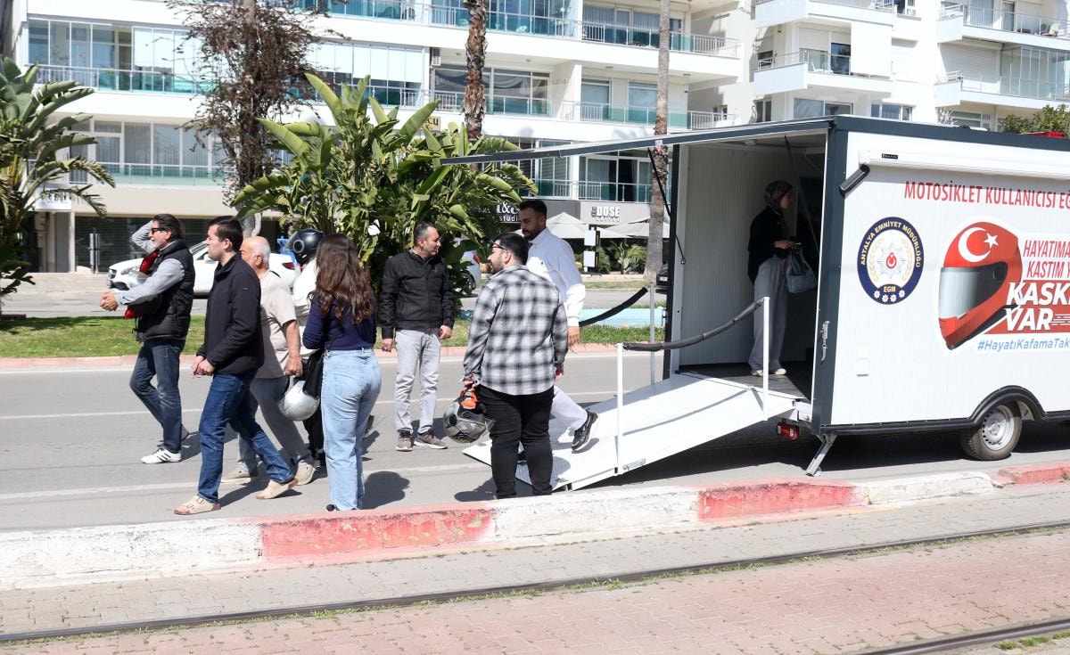 Türkiye'de ilk kez uygulamaya alınan ve geçtiğimiz haftalarda Antalya Valisi Hulusi Şahin tarafından tanıtımı yapılan "Motosiklet Kullanıcısı Eğitim İstasyonu Trafik Mobil Karavanı", şehrin sokaklarında trafik polislerinin hizmetine sunuldu.