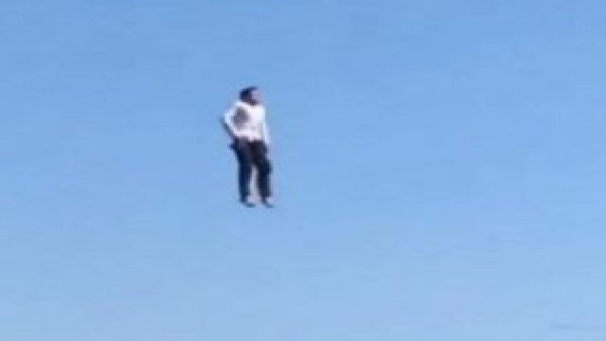 Dik bir şekilde ayaklarının üzerine denize düşen adı öğrenilemeyen kişiyi, bir arkadaşı da cep telefonuyla görüntüledi.