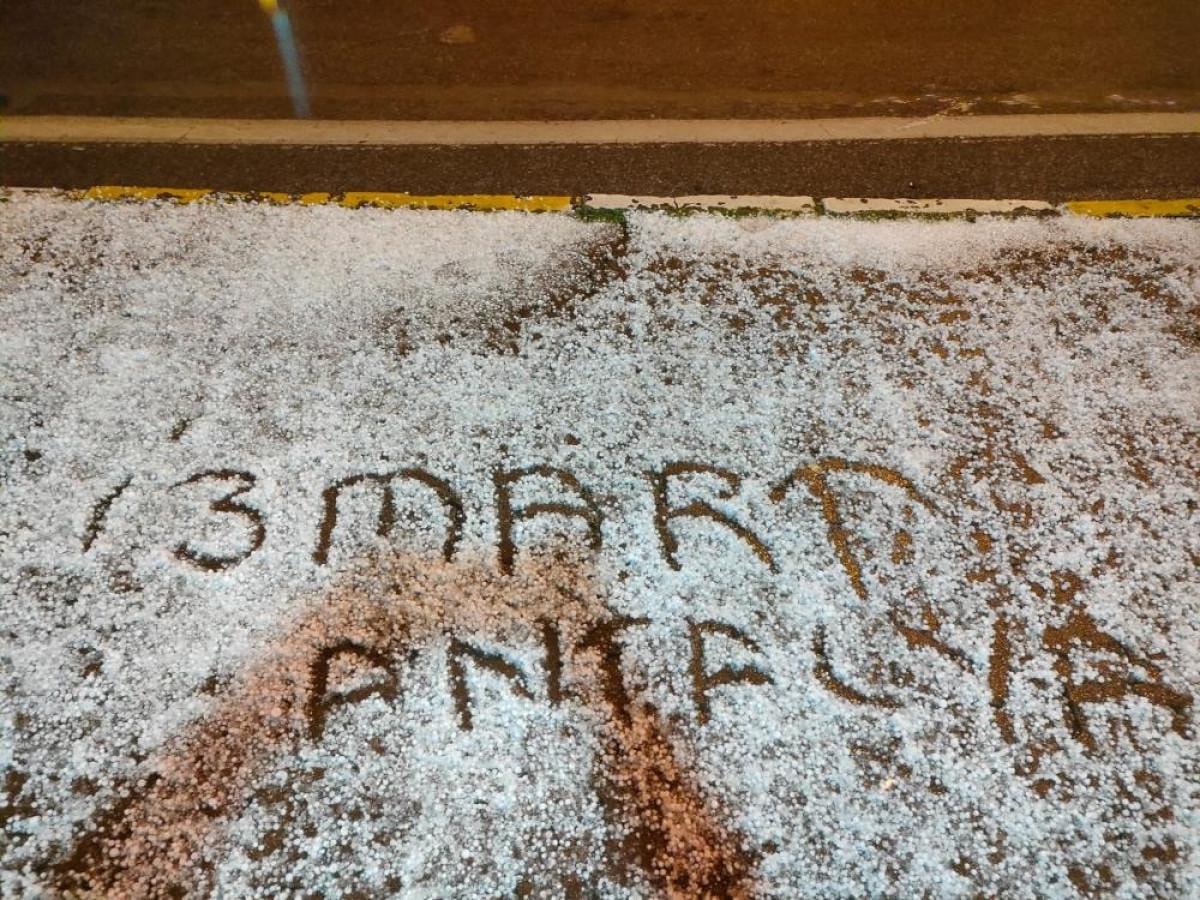 Hortum karaya ulaşmadan gözlerden kaybolurken akşam saatlerinde aniden bastıran dolu kentte cadde ve sokakları beyaza bürüdü.
