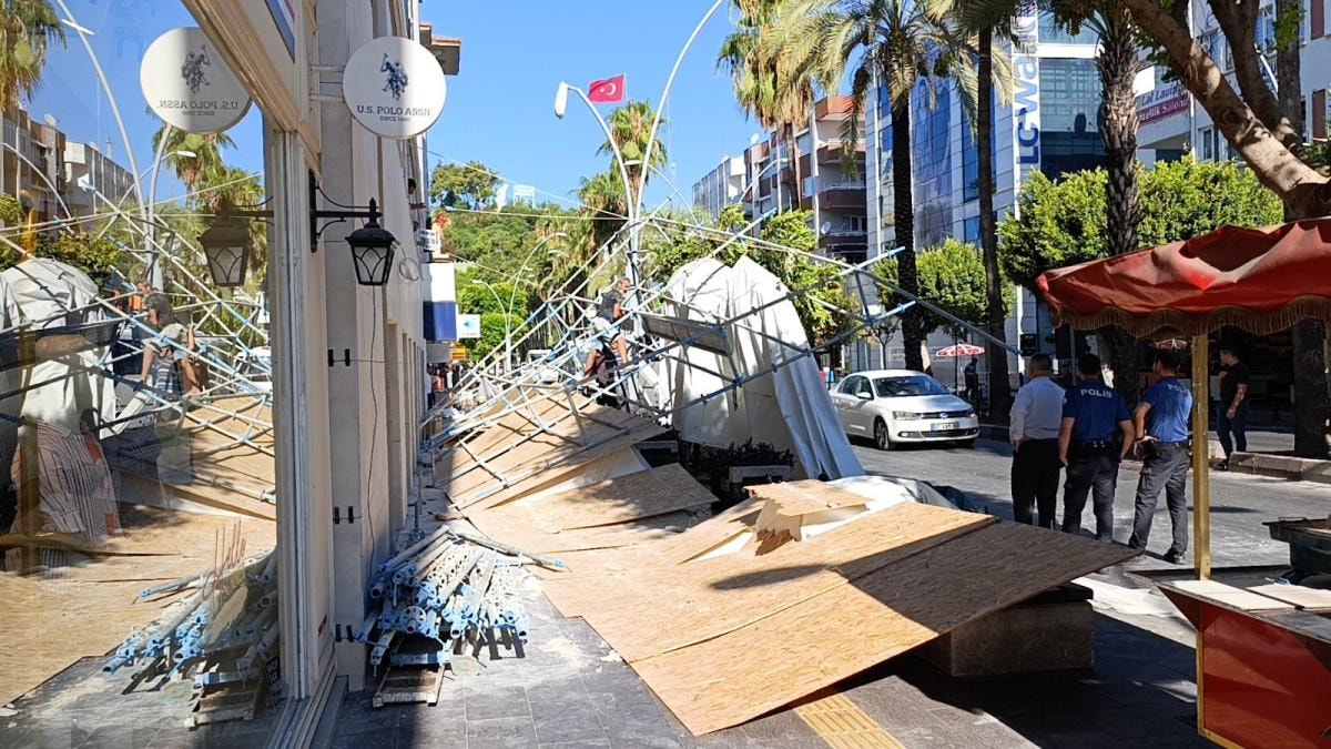 İskele demirleri kaldırım ve yolun bir bölümüne yıkılırken, demirlerden bazıları durakta yolcu indiren Salih Emek'in kullandığı 07 J 2246 plakalı minibüsünün üzerine düşerek zarar verdi.