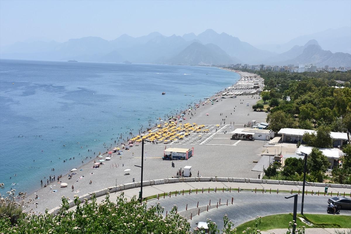 Turizmin başkenti Antalya'da sıcak hava nedeniyle soluğu sahillerde alan yerli ve yabancı turistler, termometreler 45 dereceyi gösterince sahili boş bıraktı.