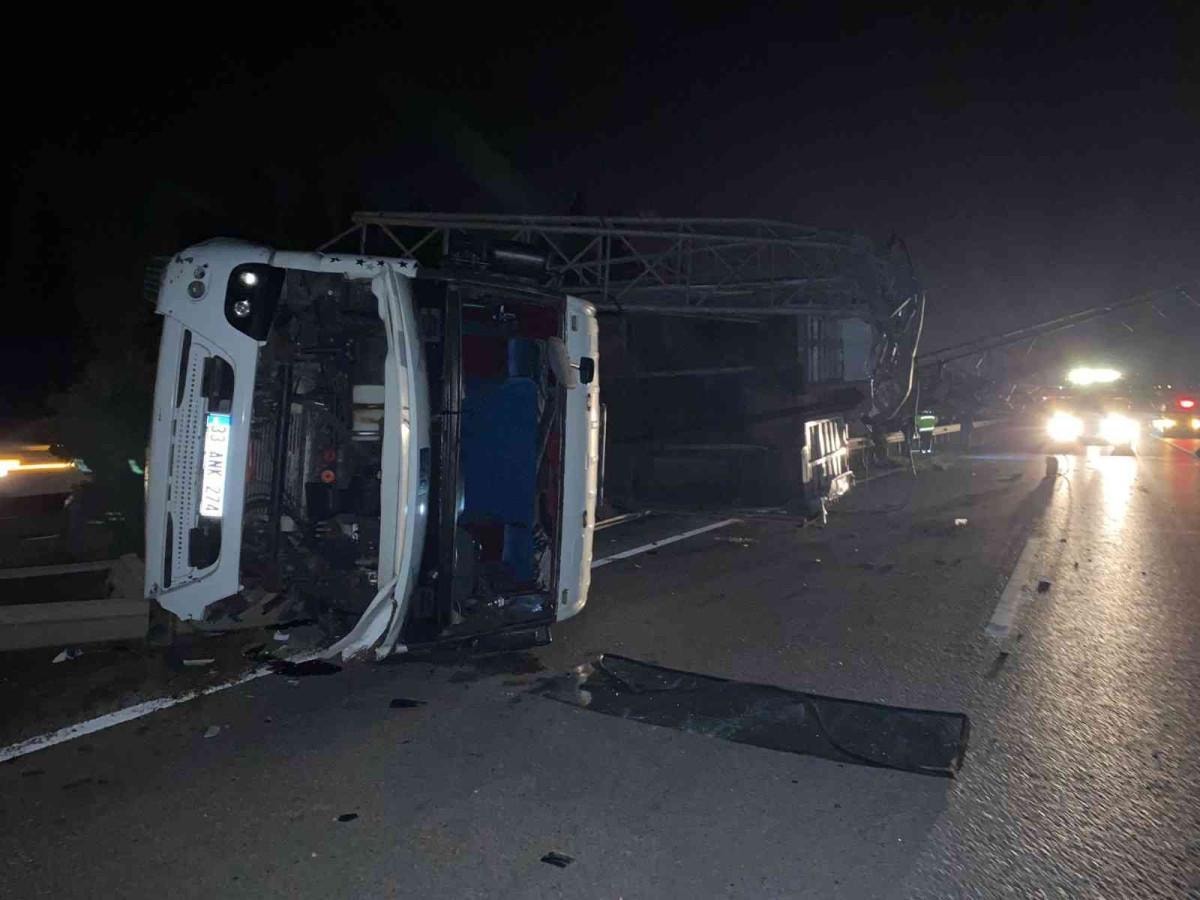 EDS sistemi parçalandı, tır da devrildi