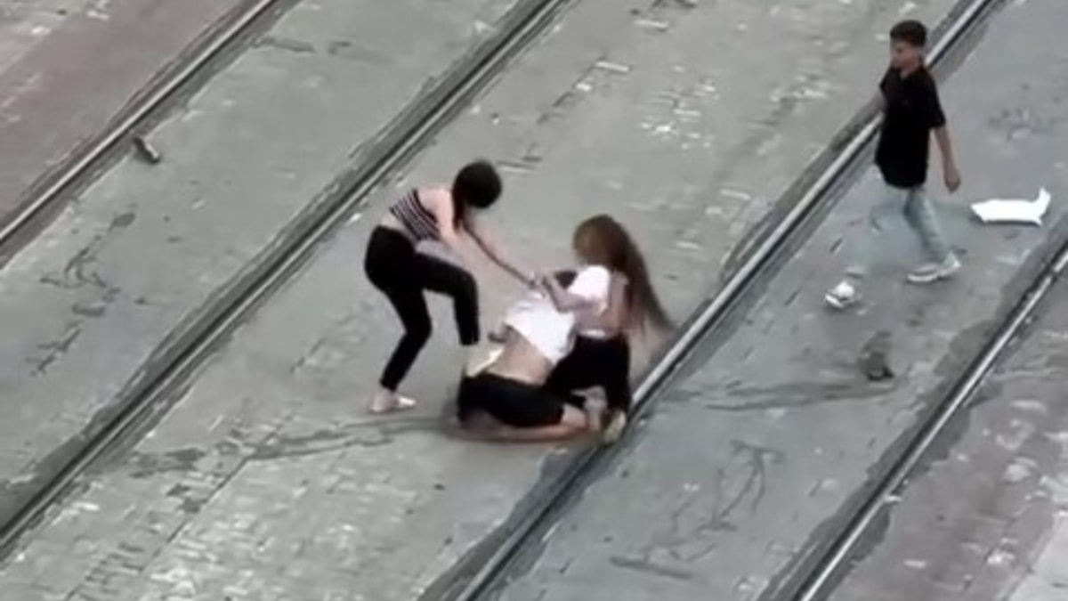 Antalya'nın Muratpaşa ilçesi Şarampol Caddesi tramvay yolu üzerinde 3 kadın, önce tartışıp sonra kavga etmeye başladı.