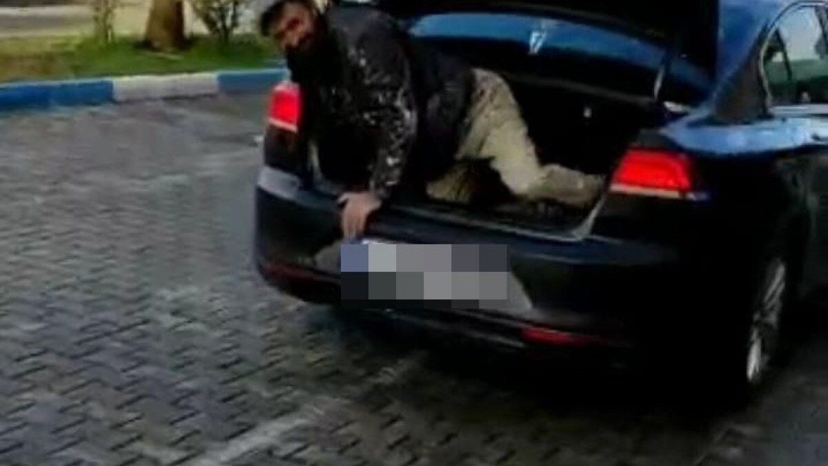 Yapı marketin önüne gelindiğinde ön ya da arka koltuk yerine açılan bagajdan inen işçiyi görenler gözlerine inanamadı. Bagajdan inip yapı markete giren ve ayakkabısını değiştiren işçi, tekrar bagaja bindi ve kapısı bir vatandaşın yardımıyla kapatıldı.