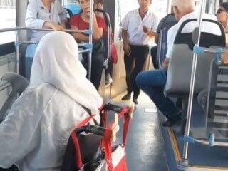 Durakta engelli aracıyla bekleyen yaşlı bir kadın ise otobüs rampasını kullanamayınca diğer yolcuların yardımıyla otobüse bindirildi. Duruma sinirlenen yaşlı kadın, otobüs içerisinde şoföre sitem etmeye başladı. Şoförü haklı gören bazı yolcularla da münakaşaya giren yaşlı kadın, tepkisine devam edince şoför otobüsü kenara çekti.