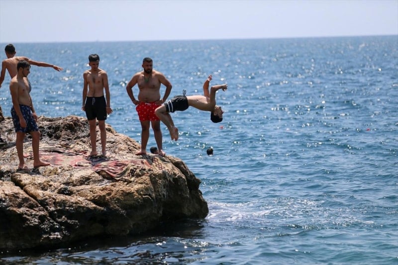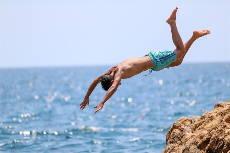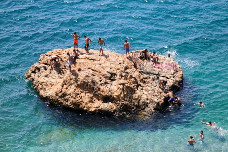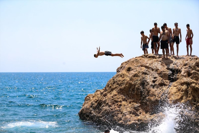 Gençlerin de kayalıklardan denize atladığı görüldü.
