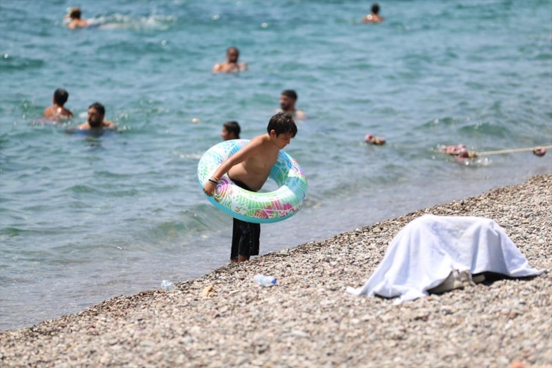 Sıcak hava ve yüksek nemden bunalan kent sakinleri ile turistler, Konyaaltı ve Lara sahillerinde denize girip serinlemeye çalıştı.