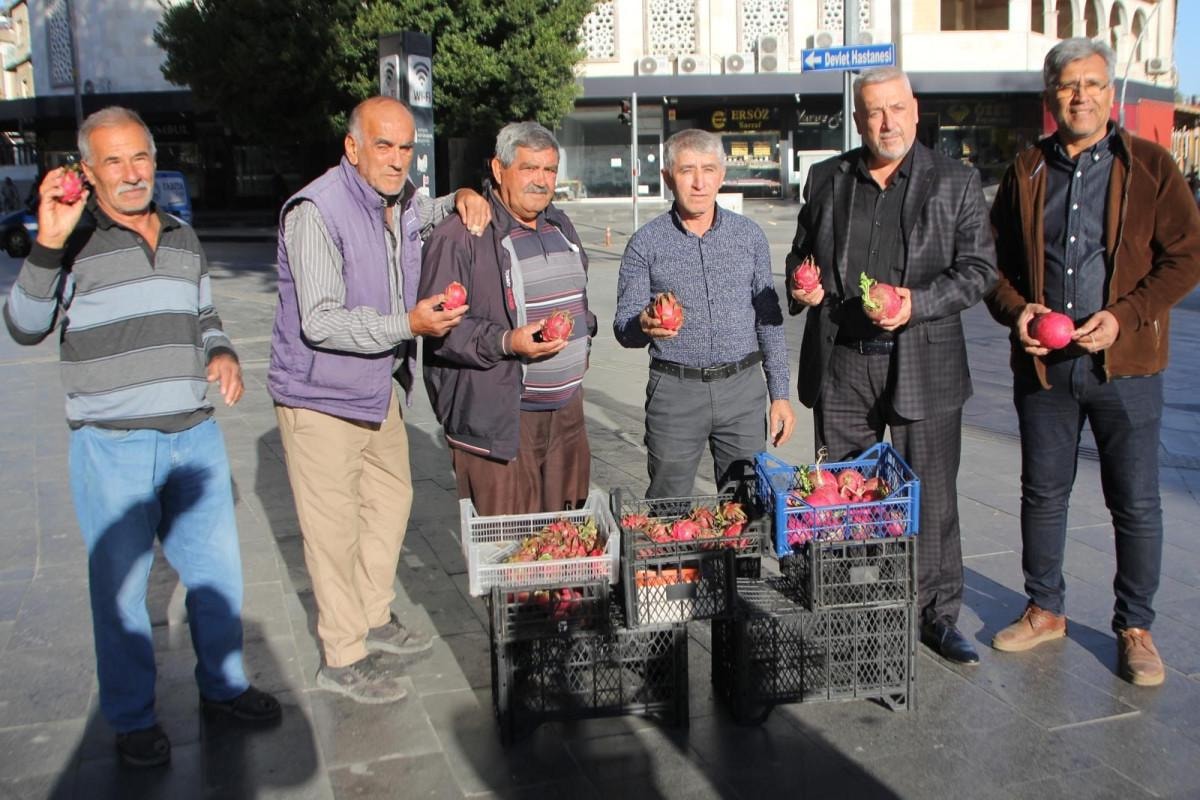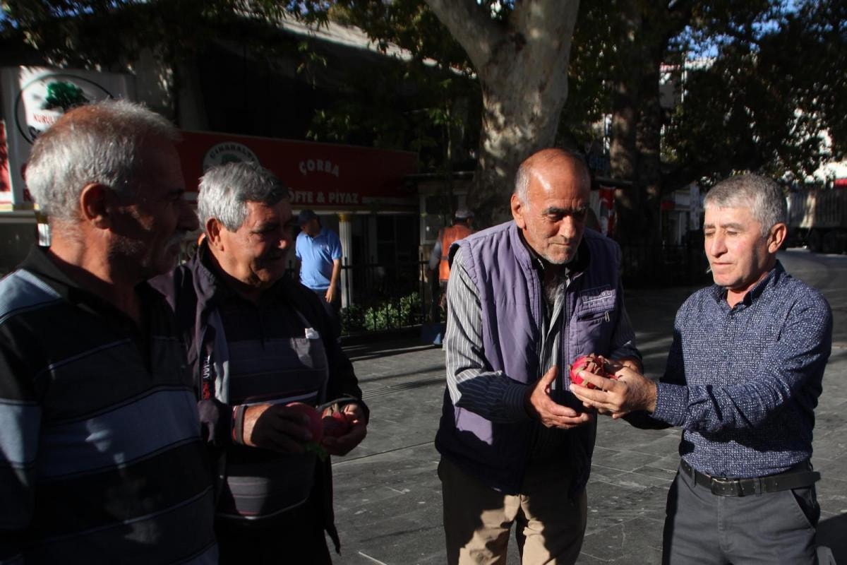 Çiftçilikle uğraşan Beyazıt Işık, Çınaraltı Meydanı'na getirdiği ejder meyvesi ve turpu halka ücretsiz dağıttı.