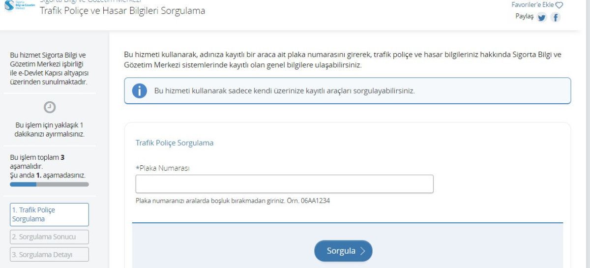 5. Plaka, şasi numarası veya poliçe numarasını girin.