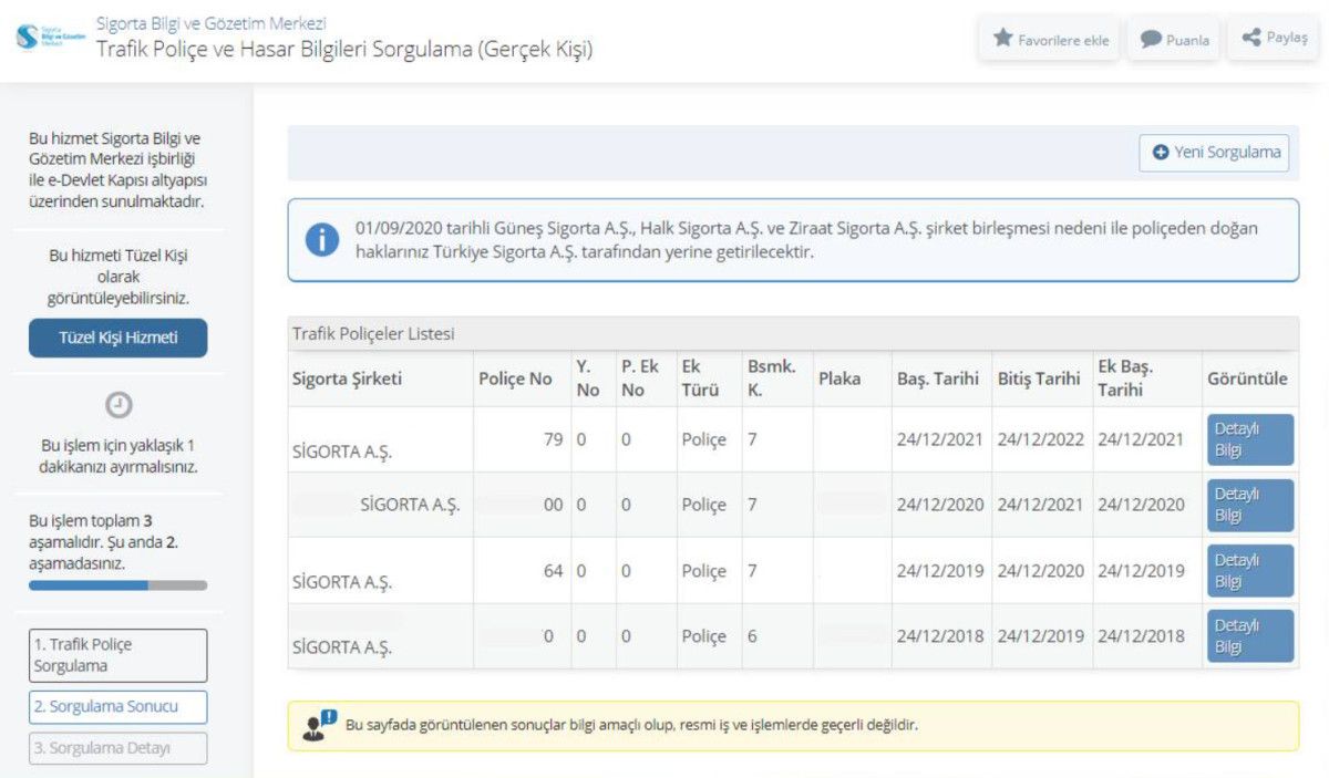 · Araç plakası ve poliçe detayları