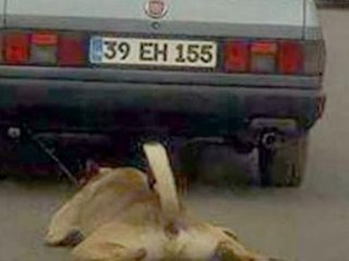 Aracın arkasına bağladığı köpeği metrelerce sürükledi