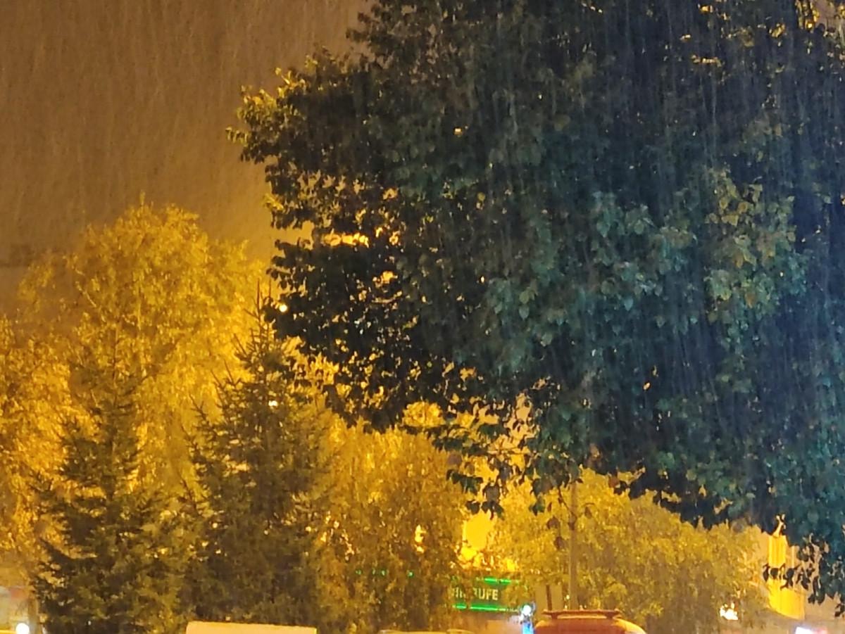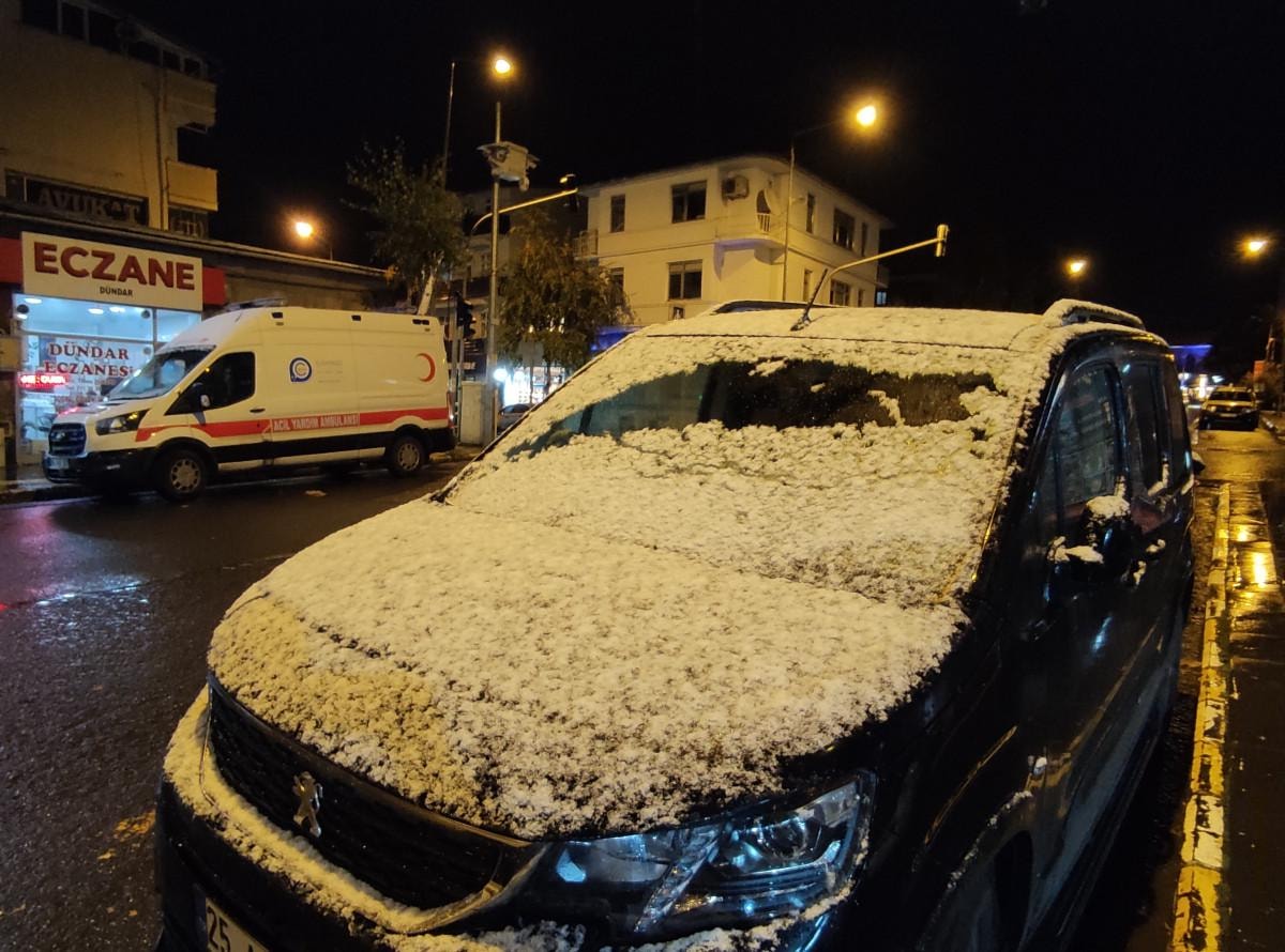 Hava sıcaklığının eksi 1 dereceye kadar düşmesiyle birlikte kent merkezinde etkili olan sağanak, yerini kar yağışına bıraktı.