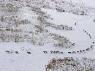 Kar yağışının etkili olduğu illerden biri olan Ardahan'da çekilen bir fotoğraf, herkesi şaşkına uğrattı. Yiyecek bulmak için kente yakın yerlerde sürü halinde gezen kurt sürüsü, bölge halkında büyük paniğe neden oldu.
