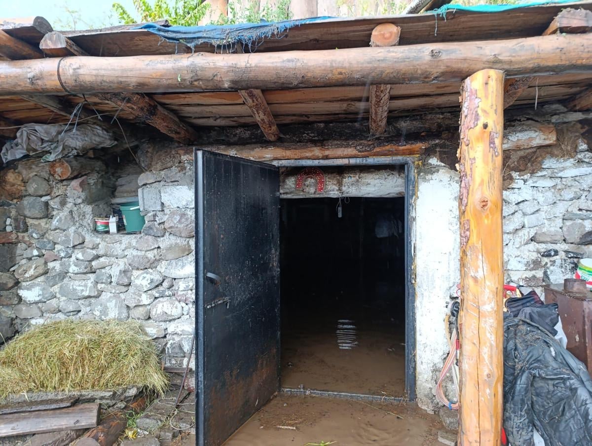 Köyün üst bölgelerinden gelen sel nedeniyle bazı evler suyla doldu.