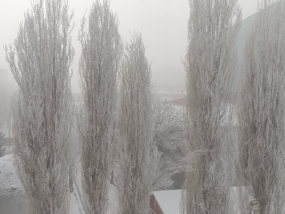Kent genelinde ev ve iş yerlerinin camları buzla kaplanırken, ağaçlar ve yeşil alanlar kırağıyla örtüldü. Soğuk hava, şehir genelinde kartpostallık görüntüler oluştururken, günlük yaşamı da zorlaştırdı.