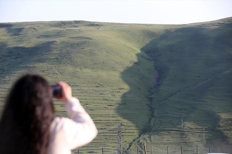 Ardahan'ın Damal ilçesinde, Karadağlar'ın eteğine, yanındaki tepenin gölgesinin düşmesiyle oluşan Atatürk silüetinin oluşumu bu yıl da izlenmeye başlandı.