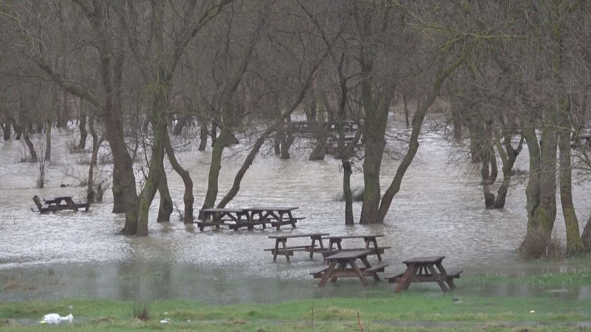 Bölgedeki mesire yeri, sular altında kaldı. Göle dönen mesire alanında piknikçilerin kullandığı masalar suya gömüldü.