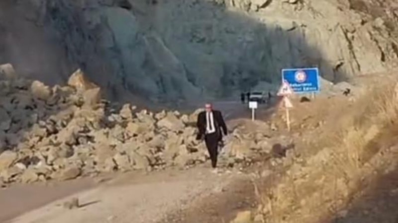 Artvin'de meydana gelen heyelan sonrası kara yolu ulaşıma kapandı. Bir vatandaşın heyelana aldırmadan karayolundan yürüyerek ilerlerken kaya parçalarından son anda kurtulması cep telefonu kamerasına yansıdı.