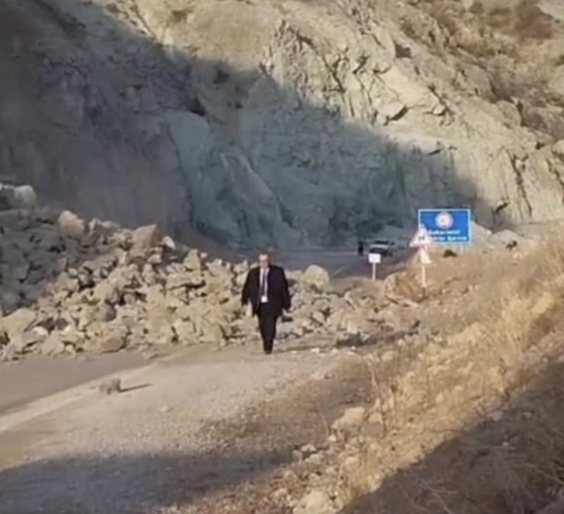 Kaya parçalarının geldiğini fark ederek araçlarını yol kenarına geçen vatandaşların dikkati olası faciayı önledi.