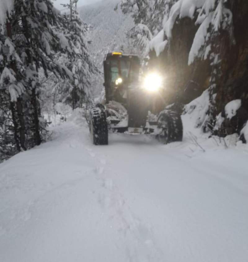 Doğu Karadeniz bölgesinde karla mücadelenin sürdüğü illerden Artvin'de de ekipler aralıksız çalışıyor.