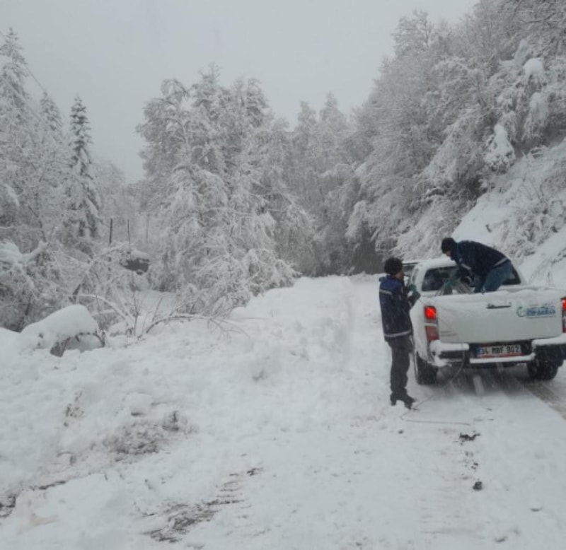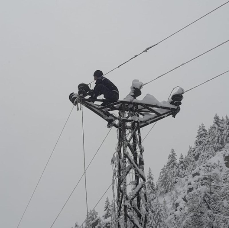 Bir yandan karla kapanan yollar açık tutulmaya çalışılırken, bir yandan da elektrik hatlarına zarar veren ağaçların temizlenmesi için uğraş veriliyor.