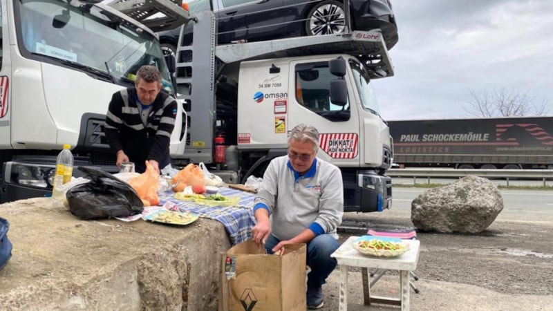 Tır kuyruğu bu kez ramazan ayına denk gelince sürücüler araçlarında kendi imkanlarıyla hazırladıkları yemeklerle oruçlarını açtılar.