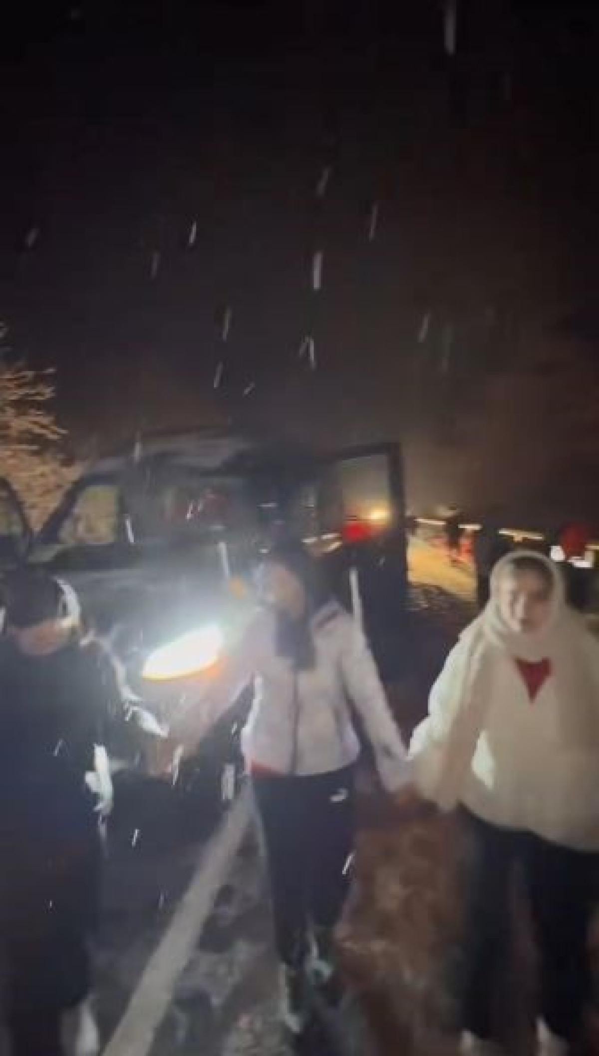 Soğuk havada beklemek zorunda kalan bazı vatandaşlar, araçlarından inerek horon oynadı.