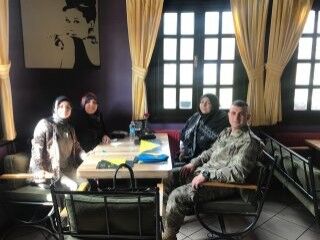 Bir kafede yakınıyla oturan annesinin yanına giderek asker selamı veren Mehmetçik'i gören annesi önce şaşkınlık yaşadı. Daha sonra oğluna sarılan anne gözyaşlarına boğuldu.