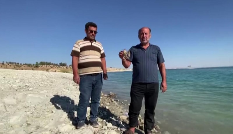 Adıyaman’ın Samsat ilçesinde iki kardeş balıkçıyız. 30 seneden sonra ilk defa ağlarımıza böyle bir canlı yakalandı. Bu ıstakoza benziyor ama herhalde kerevit diyorlar. Bunu ilk defa yakaladık, ama tekrar suya salıyoruz.