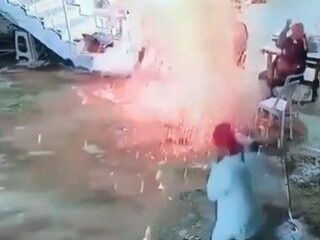 İzmir'de yanan bir ateşin etrafında oturan 3 kişinin, ateşe koydukları konservenin patlamasıyla yaşadıkları panik anları güvenlik kamerasına yansıdı.