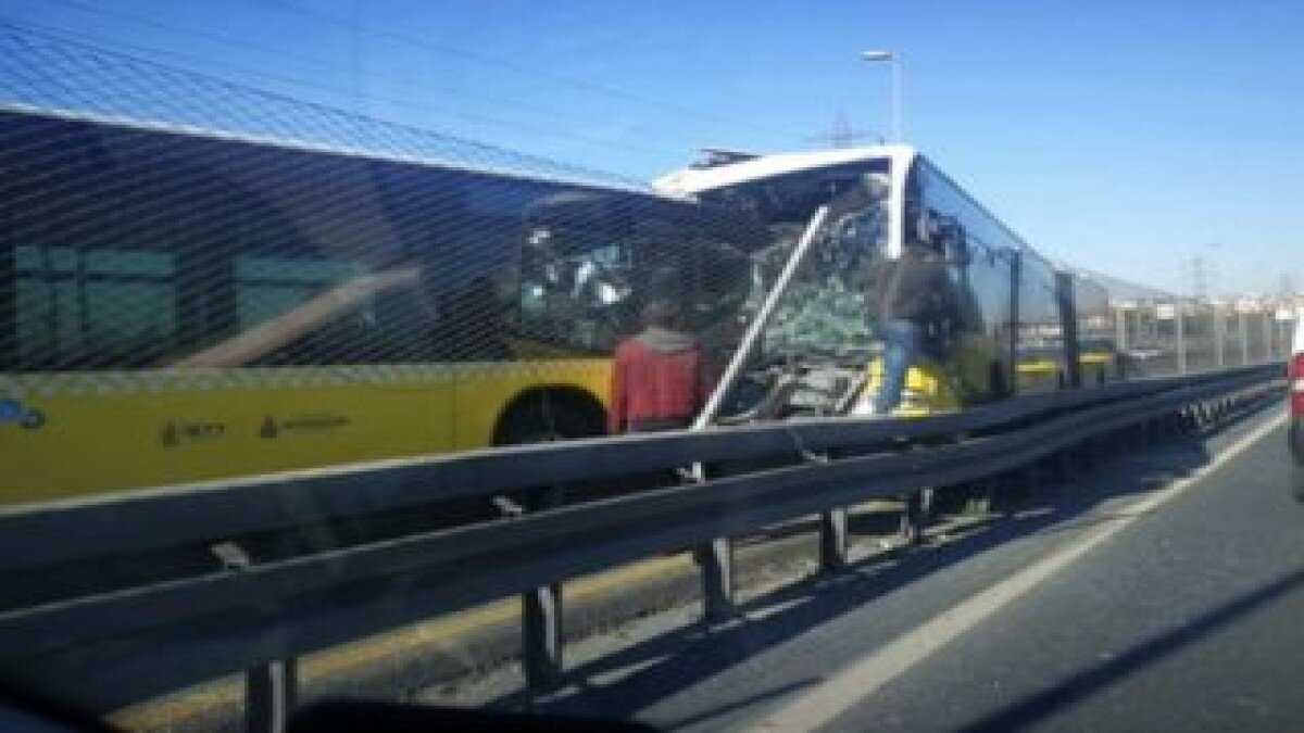 Karşı yönden gelen iki metrobüsün çarpıştığı kazada, metrobüs şoförleri ve 2 yolcu yaralanarak hastaneye kaldırıldı.