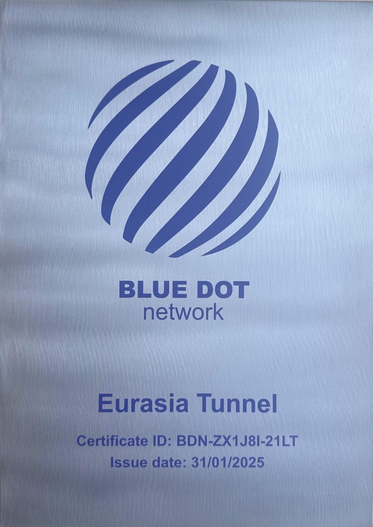 Böylece ülkemizden de ilk defa bir proje Mavi Nokta Ağı Sertifikası aldı. Avrasya Tüneli aynı zamanda dünya genelinde sertifikasyon sürecini başarıyla tamamlayan ilk 4 projeden biri oldu.