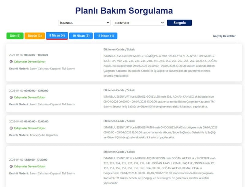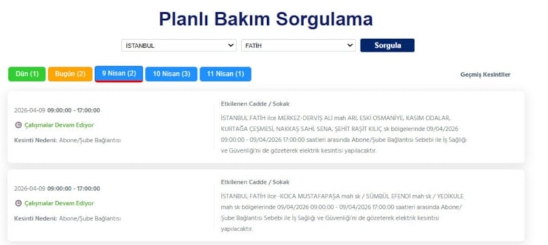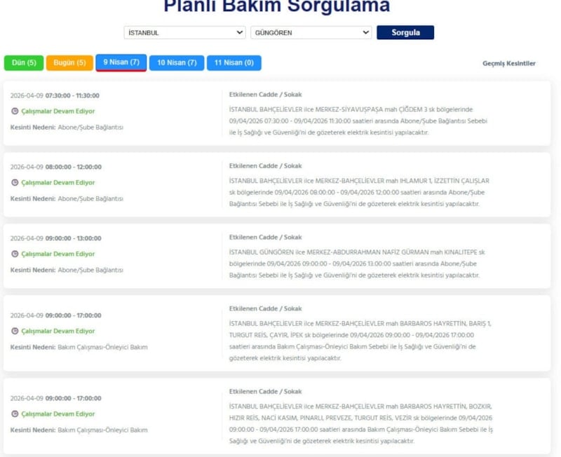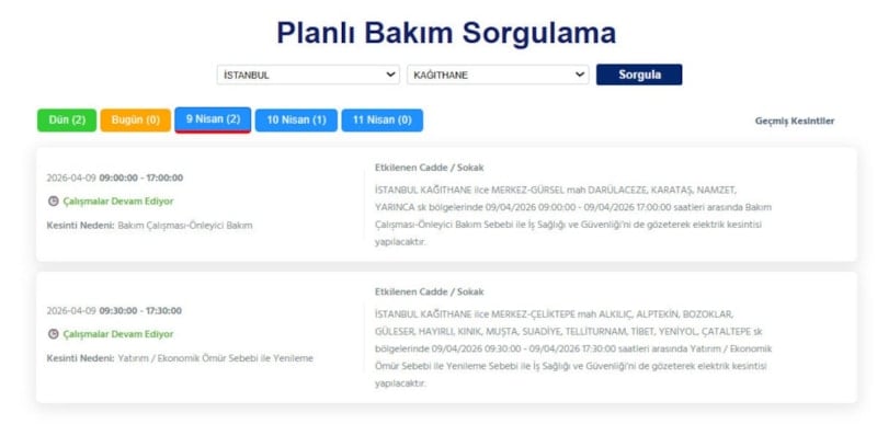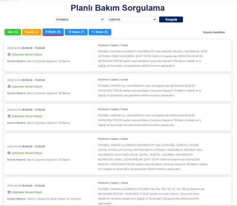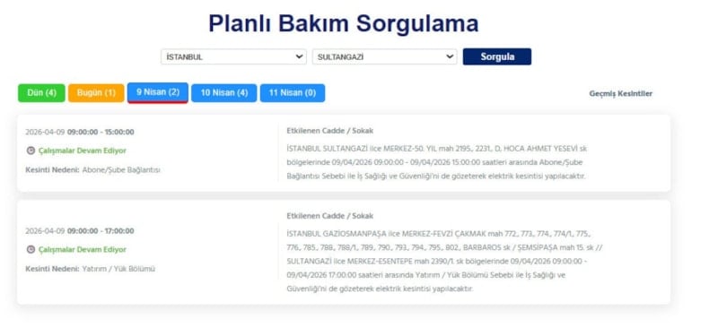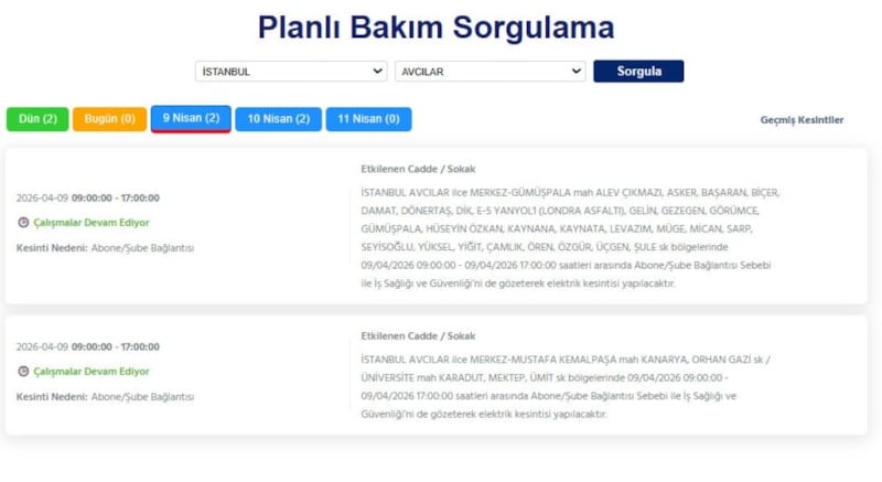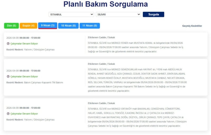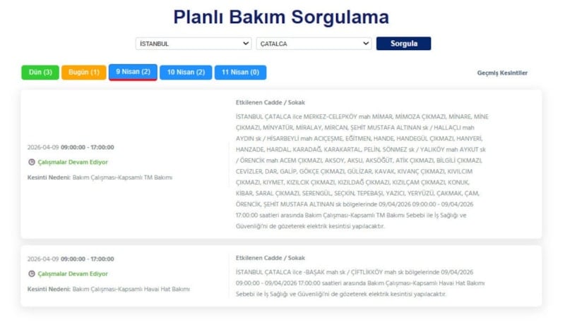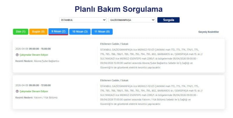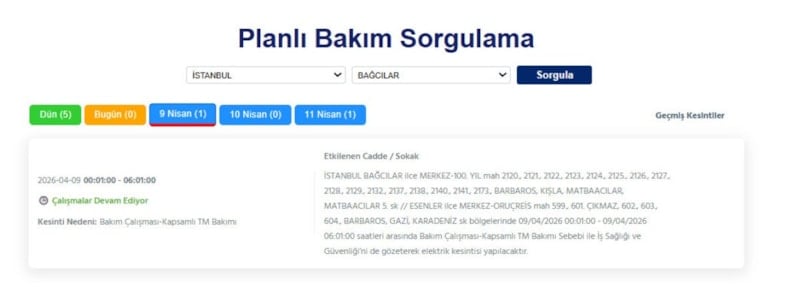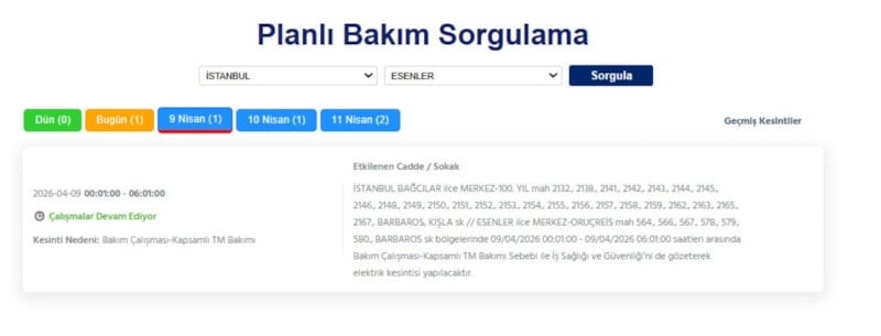 Avrupa yakasında ikamet eden vatandaşlar, 9 Nisan tarihinde elektrik kesintileriyle uyanacak.