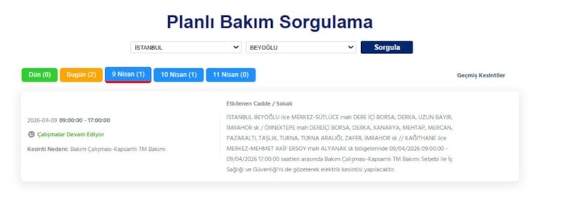 Boğaziçi Elektrik Dağıtım A.Ş. (BEDAŞ), planlı bakım, onarım ve yatırım çalışmaları kapsamında 9 Nisan Perşembe günü geniş kapsamlı bir kesintiye gidileceğini duyurdu.